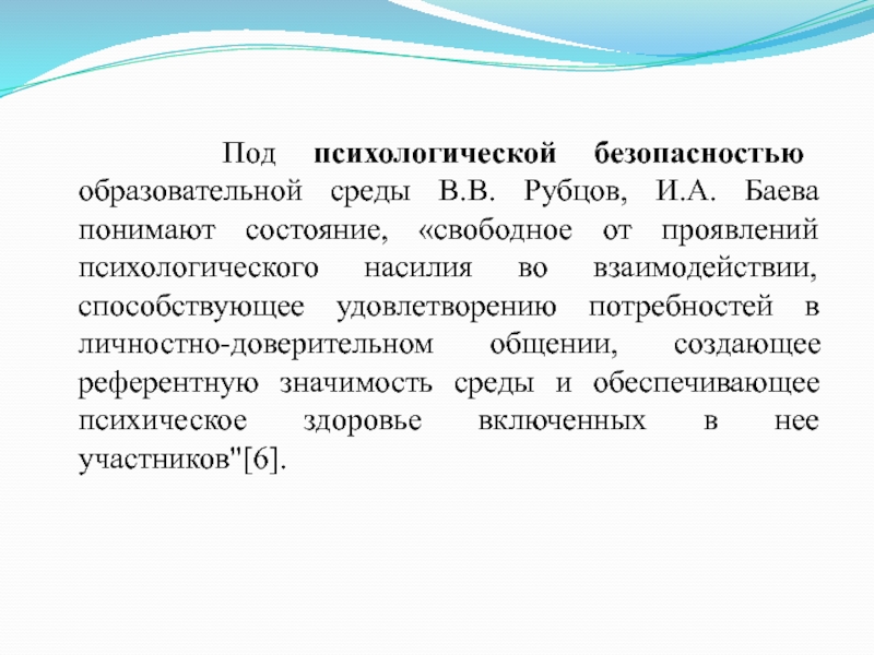 Слайд 3 Под психологической безопасностью образовательной среды В.В. Рубцов, И.А.