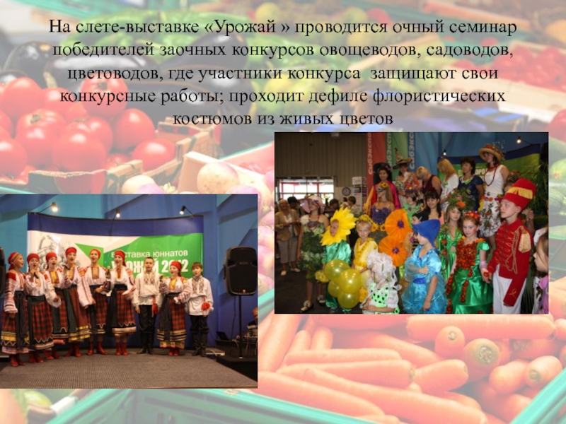 Слайд 7 На слете-выставке «Урожай » проводится очный семинар победителей заочных конкурсов овощеводов,