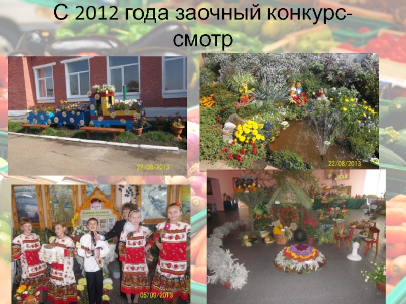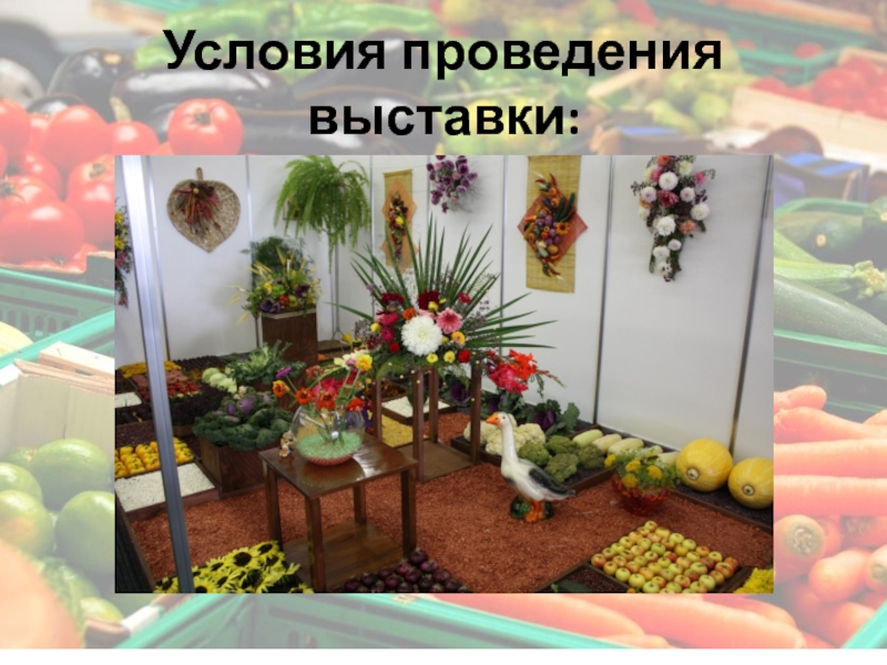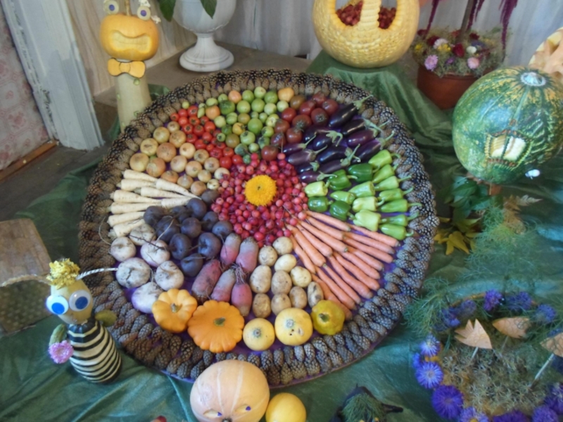На слет- выставку привозят натуральные или консервированные экспонат овощеводства, цветоводства, садоводства, полеводства, декоративные композиции из живых и