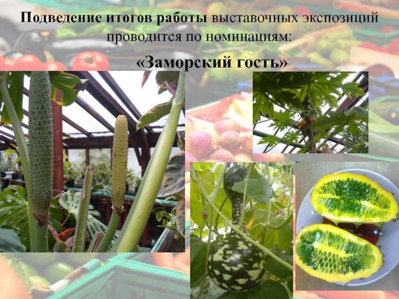 Подведение итогов работы выставочных экспозиций проводится по номинациям:«Заморский гость»