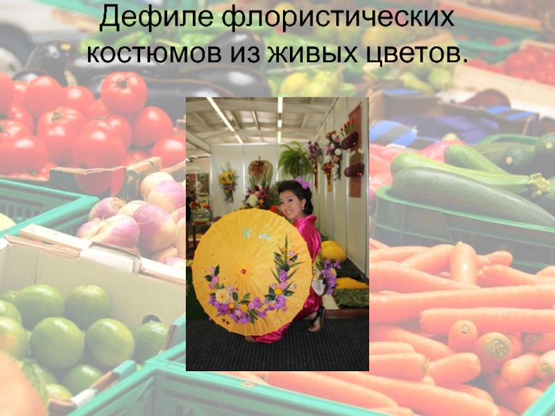 Слайд 22Дефиле флористических костюмов из живых цветов.