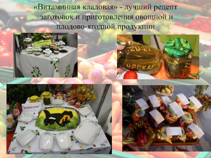 «Витаминная кладовая» - лучший рецепт  заготовок и приготовления овощной и  плодово-ягодной продукции