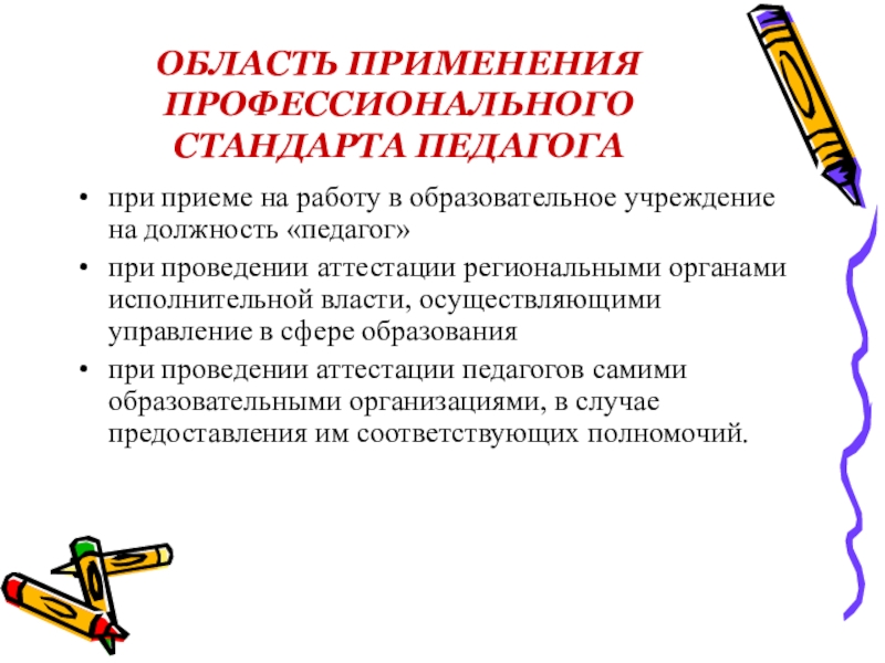 Слайд 17ОБЛАСТЬ ПРИМЕНЕНИЯ ПРОФЕССИОНАЛЬНОГО СТАНДАРТА ПЕДАГОГА