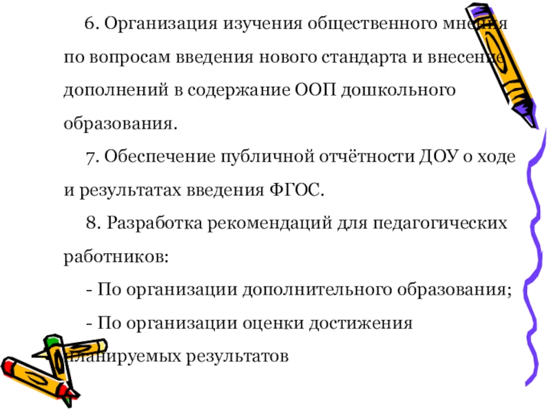 Слайд 11 6. Организация изучения общественного мнения по вопросам введения нового стандарта