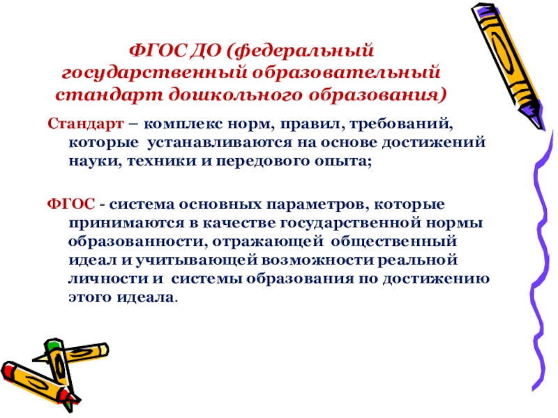 Слайд 2ФГОС ДО (федеральный государственный образовательный стандарт дошкольного образования)