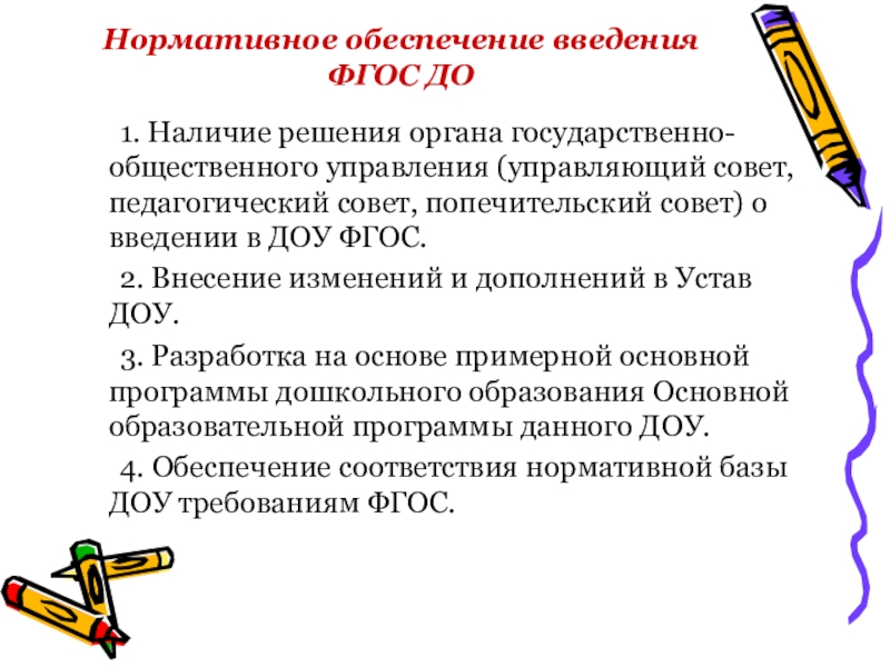 Слайд 7Нормативное обеспечение введения ФГОС ДО