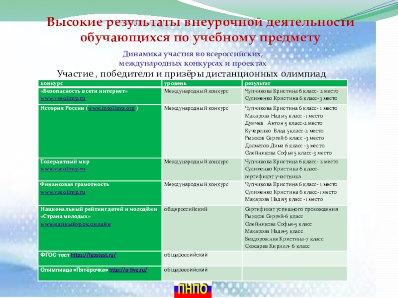 Слайд 17Высокие результаты внеурочной деятельности обучающихся по учебному предмету