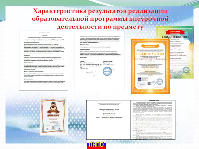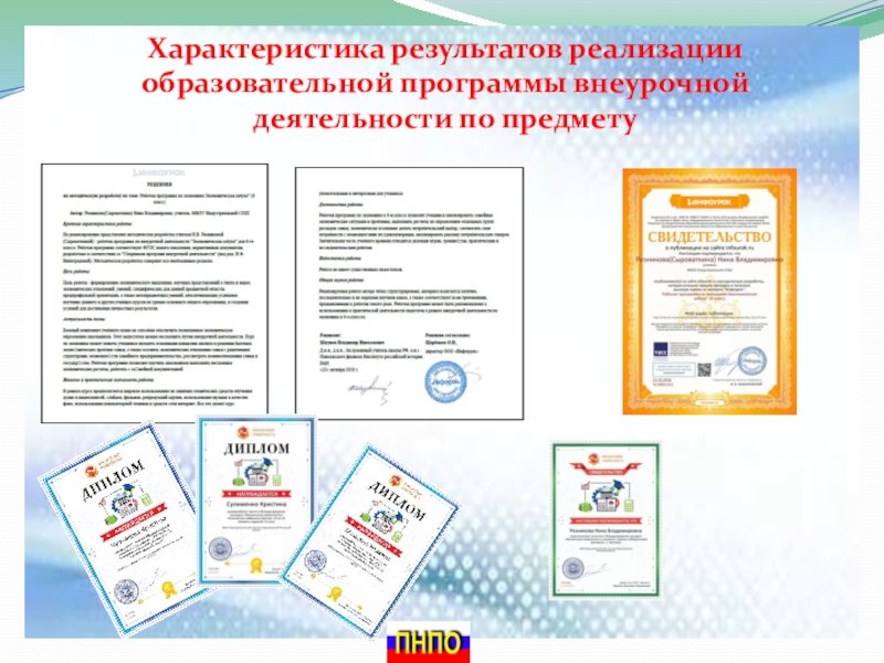 Слайд 14Характеристика результатов реализации образовательной программы внеурочной деятельности по предмету