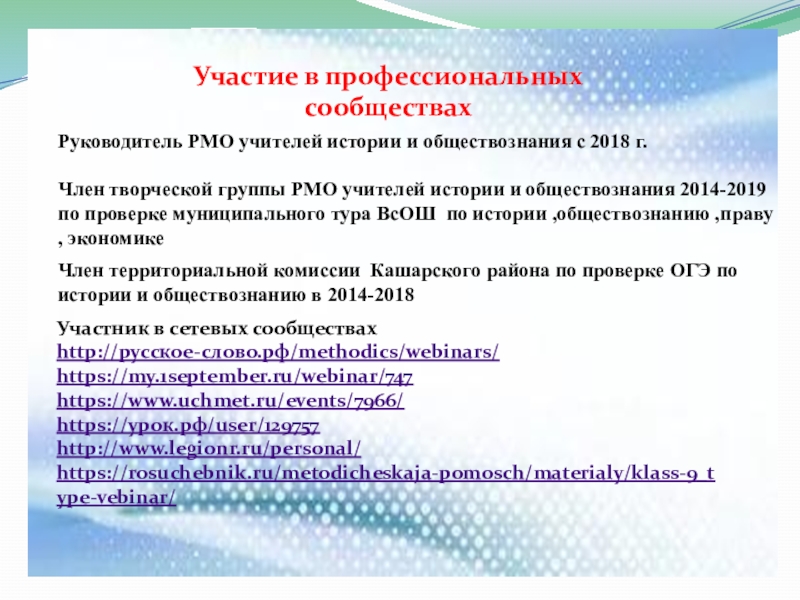 Слайд 30Участие в профессиональных сообществах