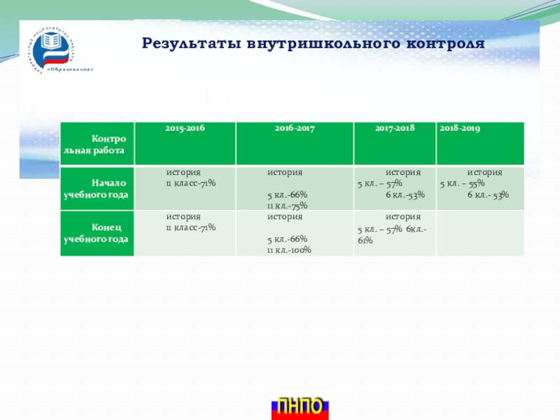 Слайд 10Результаты внутришкольного контроля