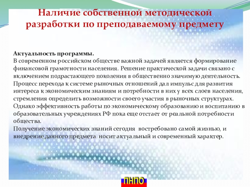 Получение экономических знаний сегодня востребовано самой жизнью, и внедрение данного предмета носит актуальный и современный характер.