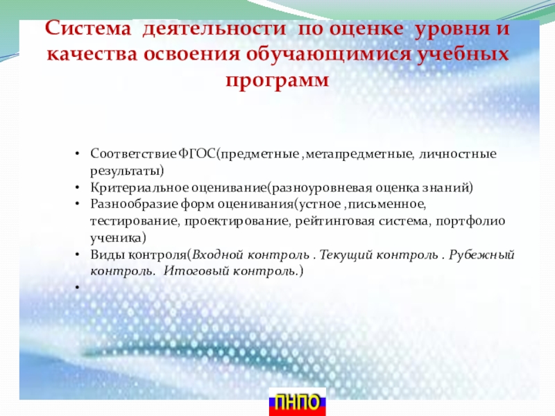 Слайд 8Система деятельности по оценке уровня и качества освоения обучающимися учебных программ