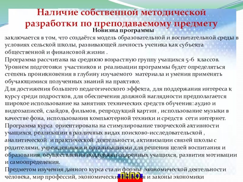 Слайд 3Наличие собственной методической разработки по преподаваемому предмету