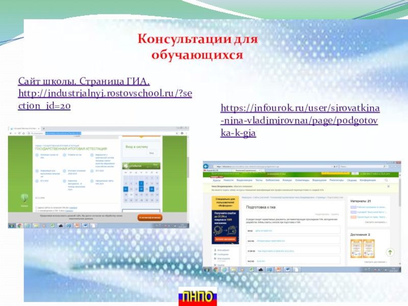 Сайт школы. Страница ГИА. http://industrialnyi.rostovschool.ru/?section_id=20