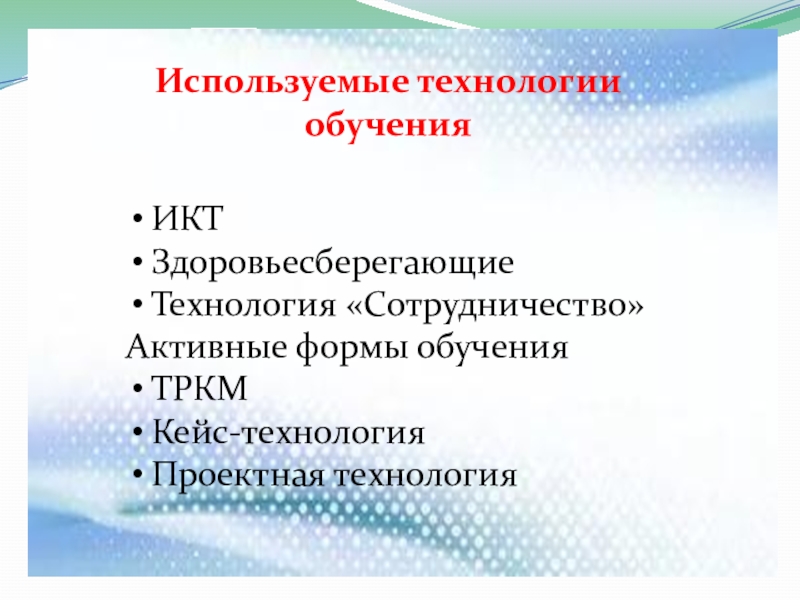 Используемые технологии обучения