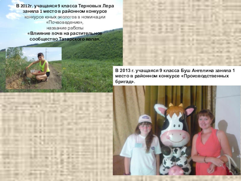 В 2013 г. учащаяся 9 класса Буш Ангелина заняла 1 место в районном конкурсе «Производственных бригад».