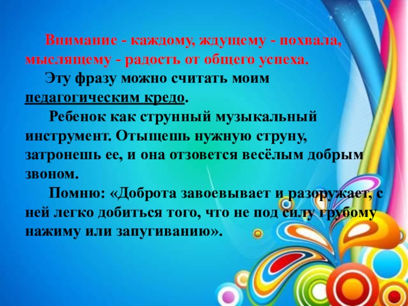 Ребенок как струнный музыкальный инструмент. Отыщешь нужную струну, затронешь ее, и она отзовется весёлым добрым звоном.