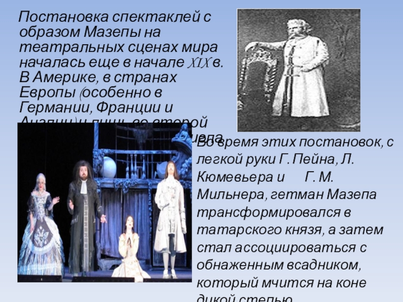 Слайд 29 Постановка спектаклей с образом Мазепы на театральных сценах мира
