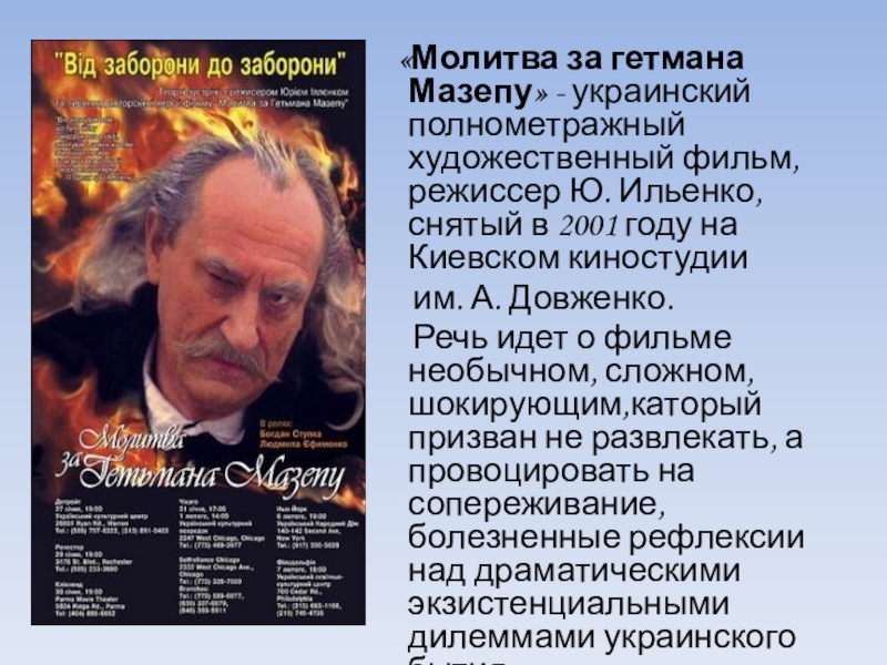 Слайд 27 «Молитва за гетмана Мазепу» - украинский полнометражный художественный фильм,
