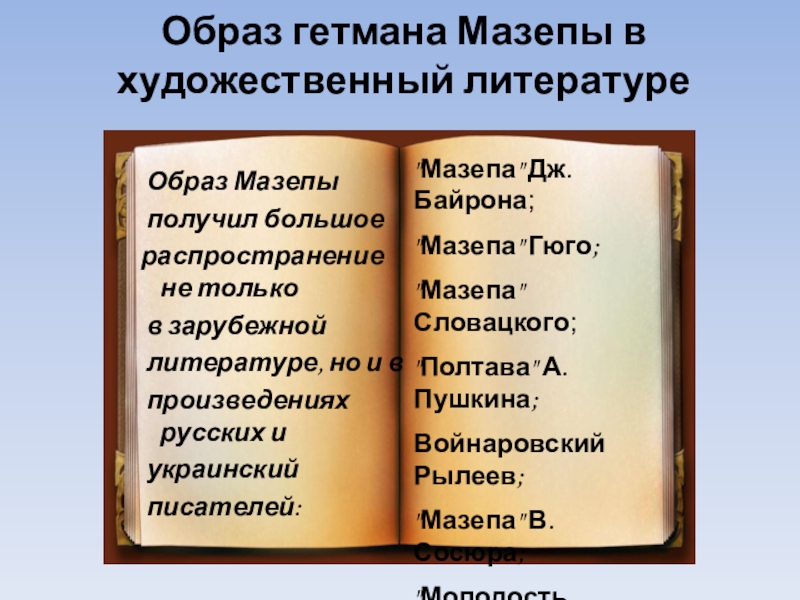 Слайд 10Образ гетмана Мазепы в художественный литературе