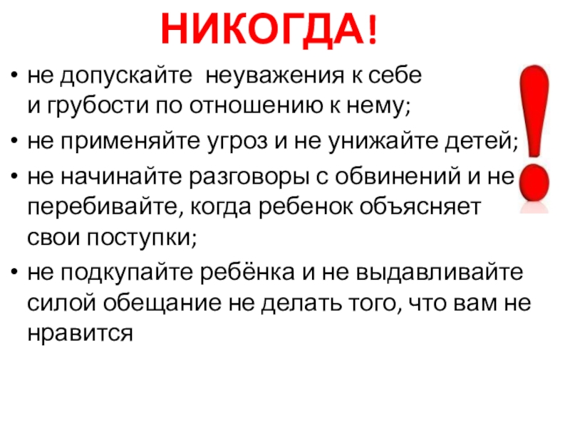 не начинайте разговоры с обвинений и не перебивайте, когда ребенок объясняет свои поступки;