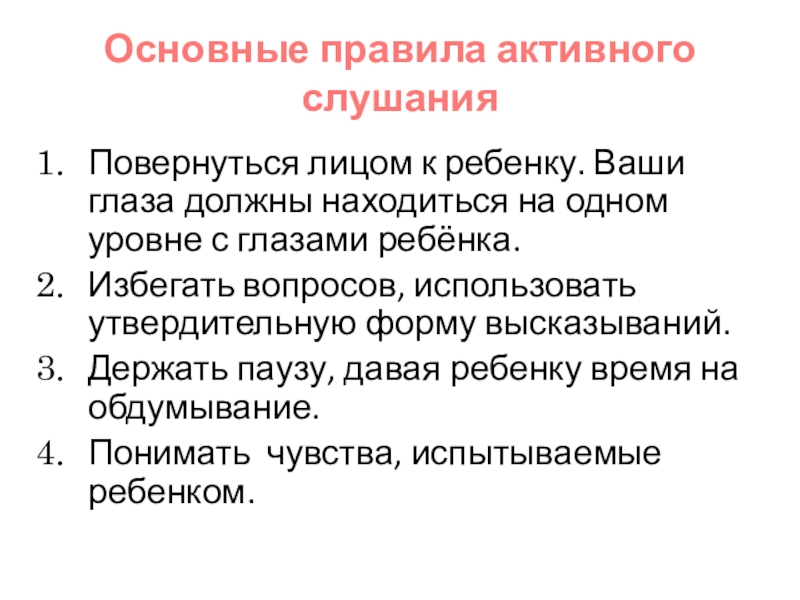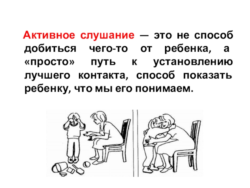 Слайд 7 Активное слушание — это не способ добиться чего-то от ребенка,