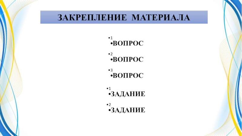 Слайд 6ЗАКРЕПЛЕНИЕ МАТЕРИАЛА