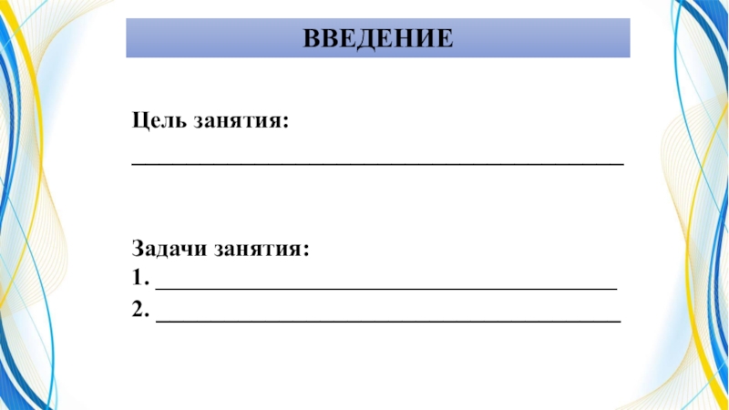 ВВЕДЕНИЕЦель занятия:____________________________________Задачи занятия:1. ______________________________________2. __________________________________