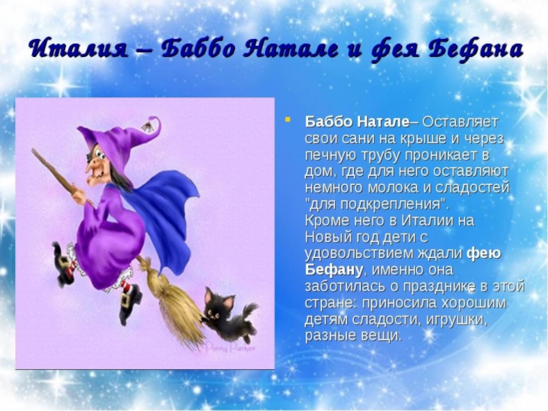 Слайд 9В Италии Новый год начинается 6 января. Все итальянские ребятишки с