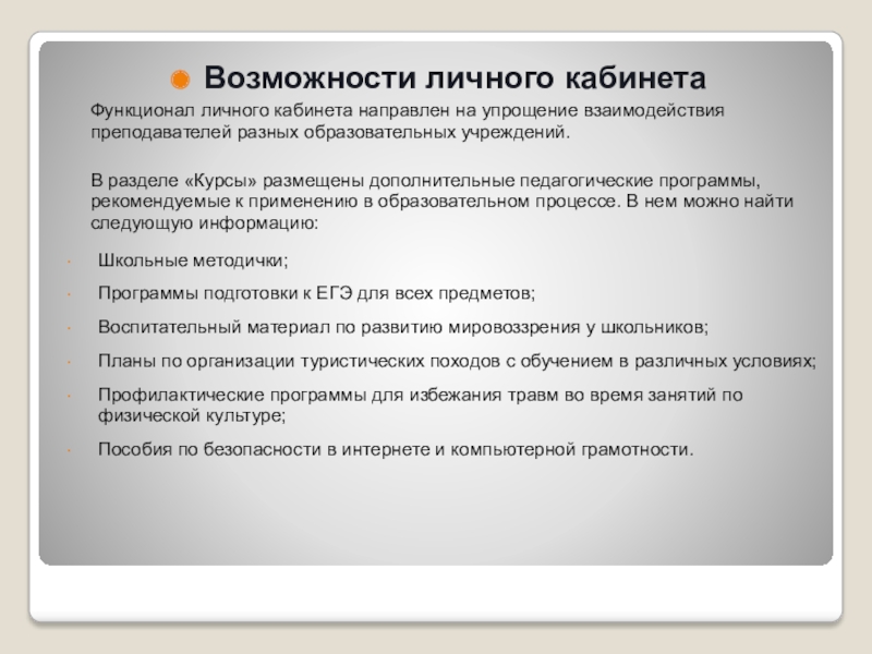 Слайд 7Возможности личного кабинета