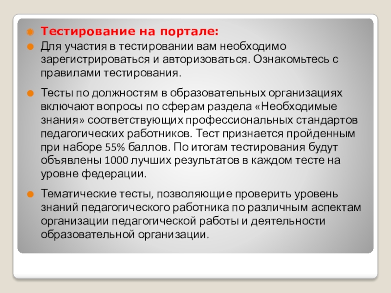 Слайд 5Тестирование на портале: