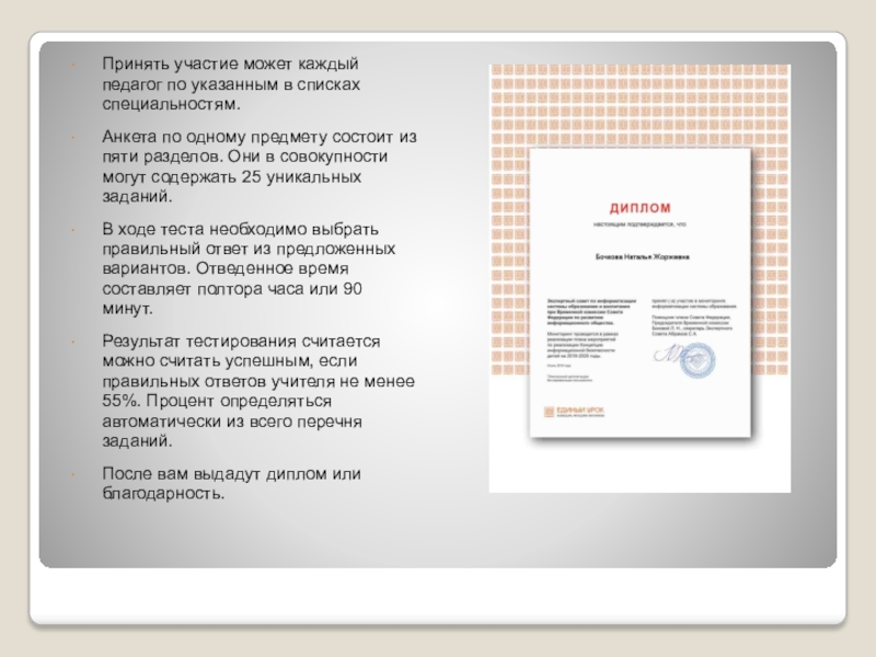 Слайд 8Участие педагогов нашей школы в тестированиях на портале