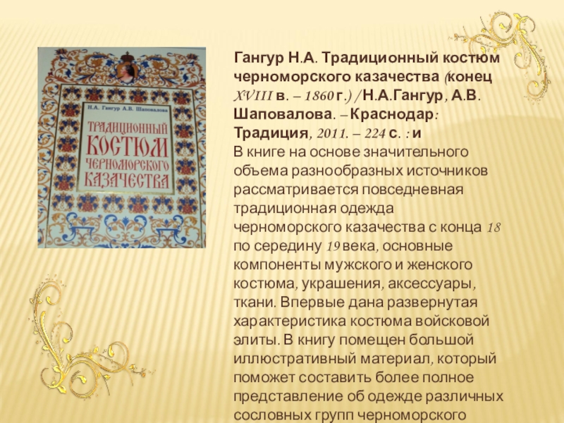 Слайд 34Гангур Н.А. Традиционный костюм черноморского казачества (конец XVIII в. – 1860 г.)