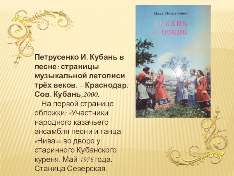 Слайд 67Петрусенко И. Кубань в песне: страницы музыкальной летописи трёх веков. –