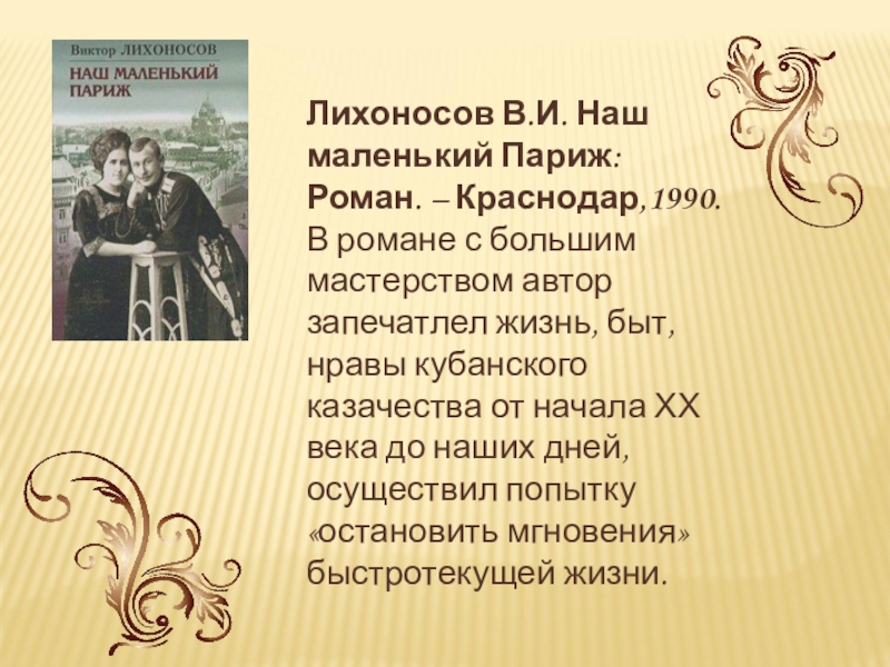 Слайд 41Лихоносов В.И. Наш маленький Париж: Роман. – Краснодар,1990.
