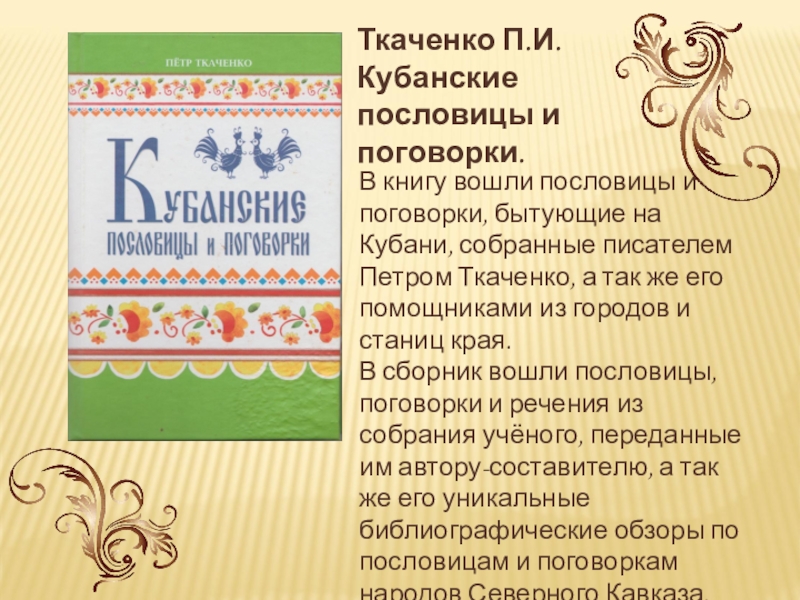 Слайд 53Ткаченко П.И. Кубанские пословицы и поговорки.