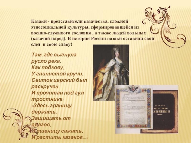 , а также людей вольных (казачий народ). В истории России казаки оставили свой след и свою славу!