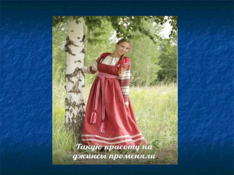 культуры, но он еще источник вдохновения для современного моделирования одежды и для создания сценических образов в разных жанрах и видах искусства и является ярким воплощением народного творчества.