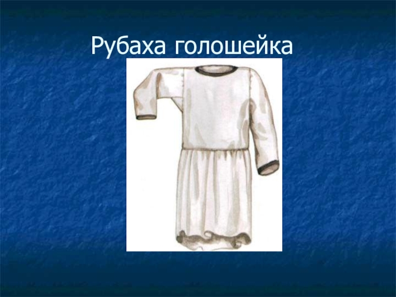 спереди имела небольшой разрез и застегивалась у шеи на одну пуговицу, ее называли "голошейкою". Украшали вышивками или мошками по горловине, разрезу, рукавам и подолу.