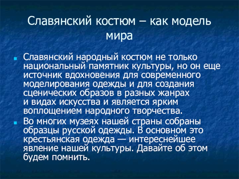 Славянский костюм – как модель мираСлавянский народный костюм не только национальный памятник культуры, но он еще источник вдохновения для современного