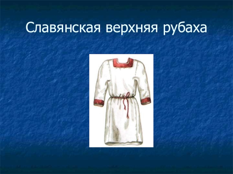 РубахаМужская рубашка была без воротника, с округлым или прямоугольным вырезом. Иногда спереди имела небольшой разрез и застегивалась