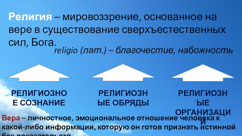 Вера – личностное, эмоциональное отношение человека к какой-либо информации, которую он готов признать истинной без доказательств.