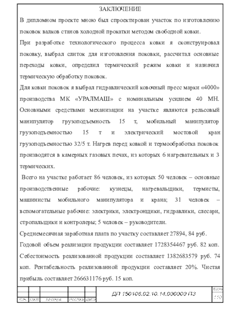В дипломном проекте мною был спроектирован участок по изготовлению поковок валков