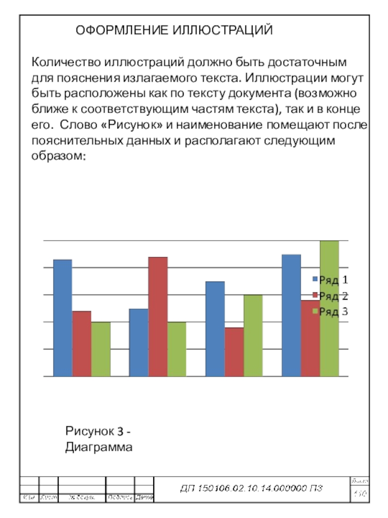 должно быть достаточным для пояснения излагаемого текста. Иллюстрации могут быть расположены как по тексту документа (возможно ближе к соответствующим частям текста), так и в конце его. Слово «Рисунок» и наименование помещают после пояснительных данных и располагают следующим образом: