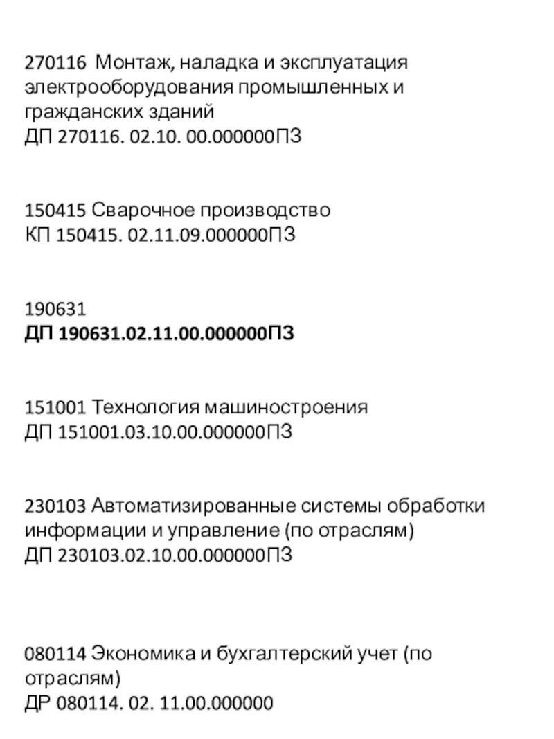 Слайд 8270116 Монтаж, наладка и эксплуатация электрооборудования промышленных и гражданских зданий