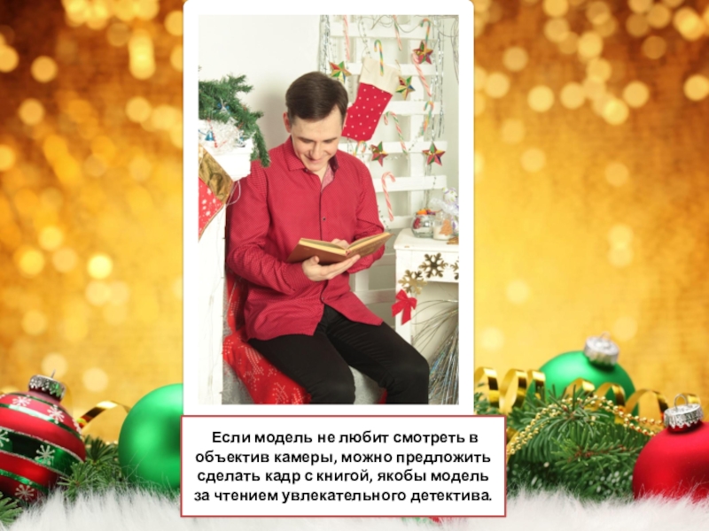 Слайд 16 Если модель не любит смотреть в объектив камеры, можно предложить