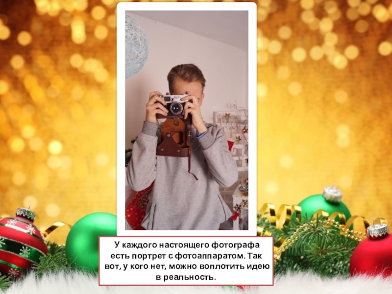 Слайд 20 У каждого настоящего фотографа есть портрет с фотоаппаратом. Так вот,
