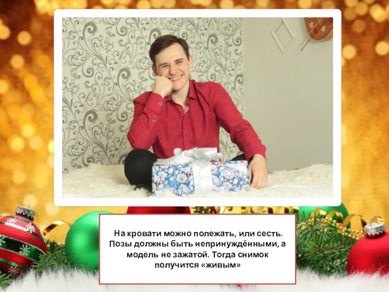 Слайд 15 На кровати можно полежать, или сесть. Позы должны быть непринуждёнными,