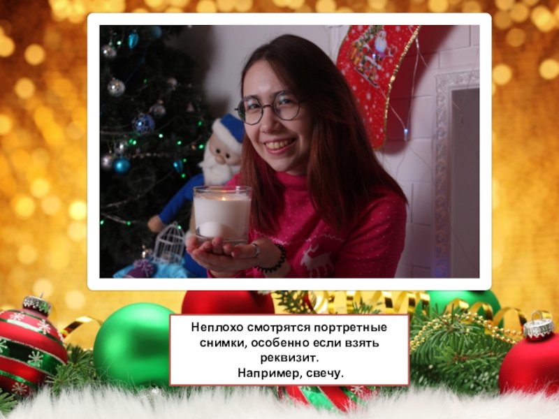 Слайд 18Неплохо смотрятся портретные снимки, особенно если взять реквизит.