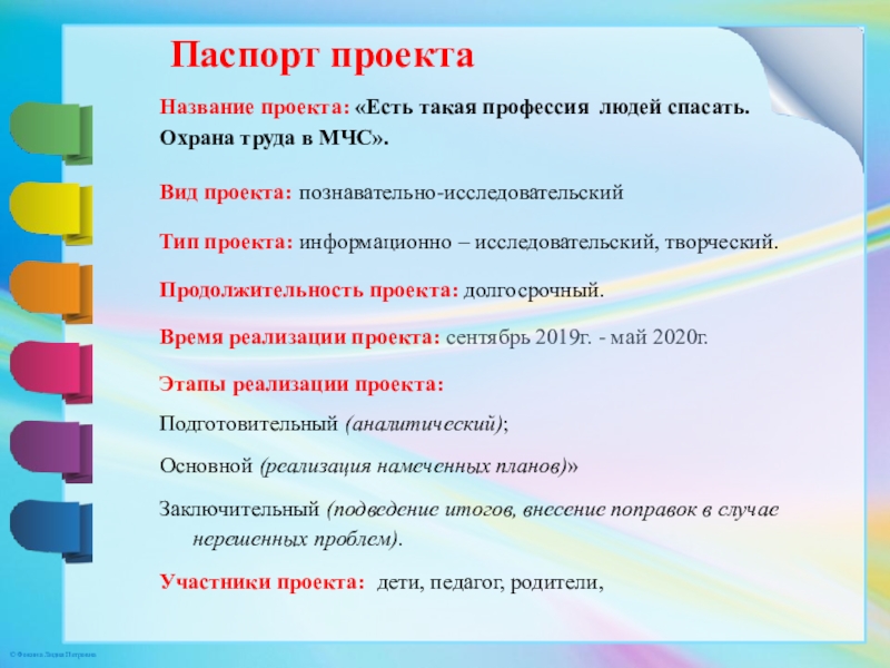 Название проекта: «Есть такая профессия людей спасать. Охрана труда в
